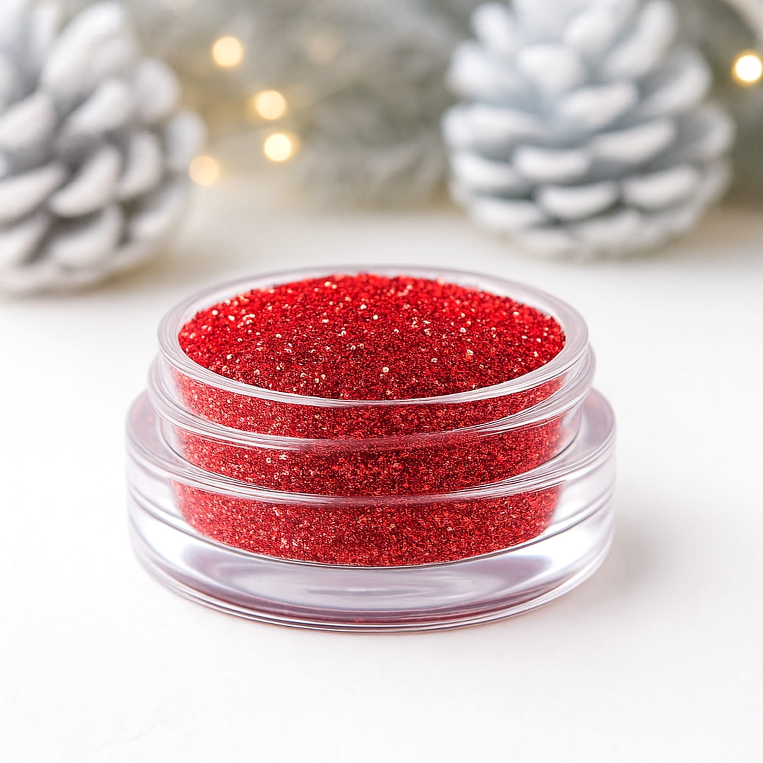 Sypki brokat ozdobny CZERWONY SZKARŁATNY 2g w pojemniczku. Drobny pyłek dekoracyjny do paznokci i rękodzieła.