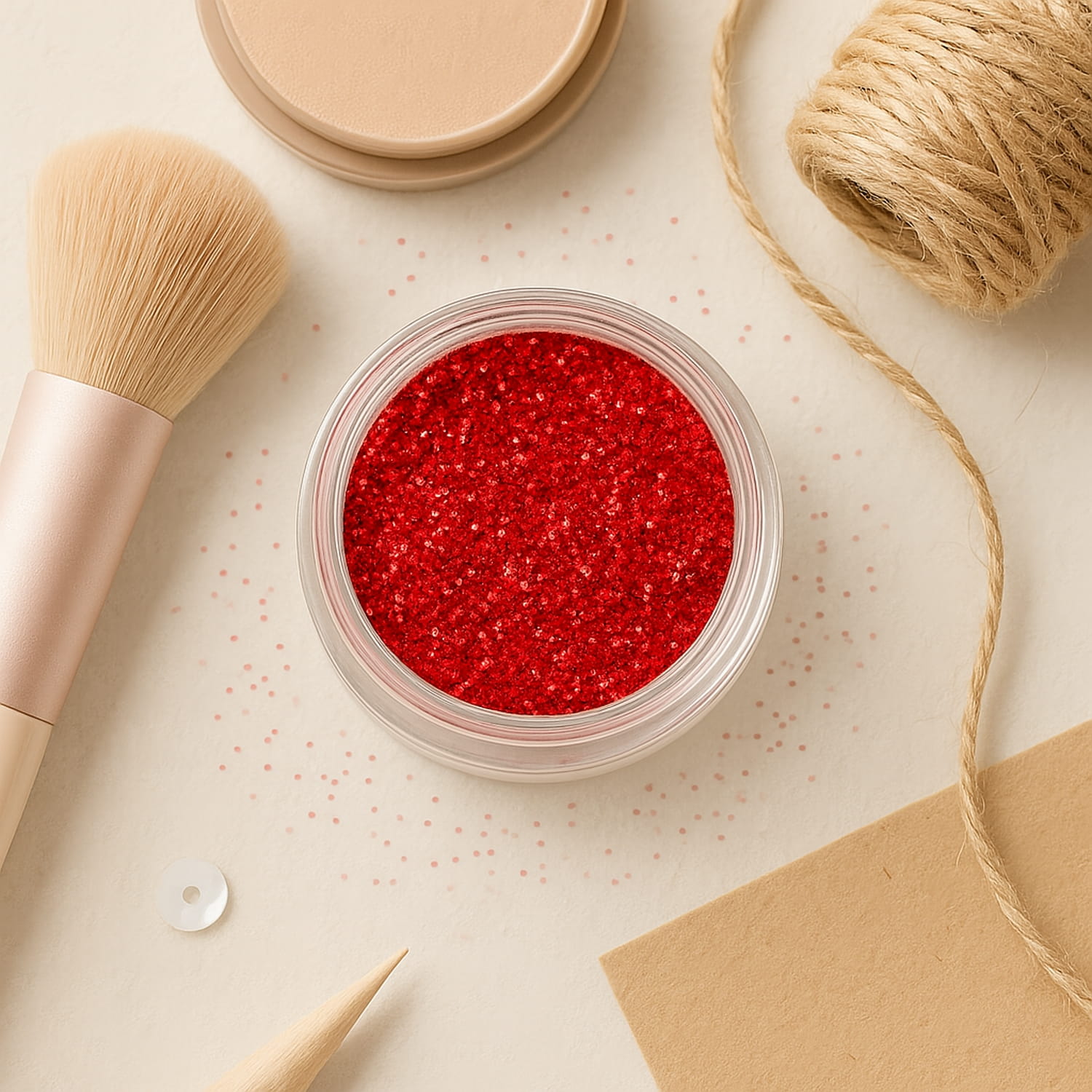 Ozdobny brokat 2g dekoracyjny CZERWONY SZKARŁATNY w pojemniczku. Sypki, drobny pyłek brokatowy do paznokci, powiek, makijażu oczu, tatuaży dla dzieci