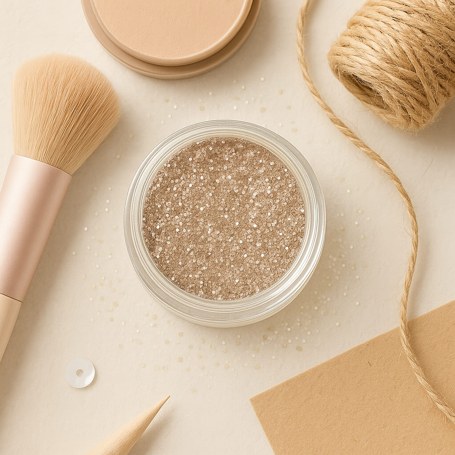 Sypki brokat ozdobny ECRU CAPPUCCINO 2g w pojemniczku. Drobny pyłek dekoracyjny do paznokci i rękodzieła.