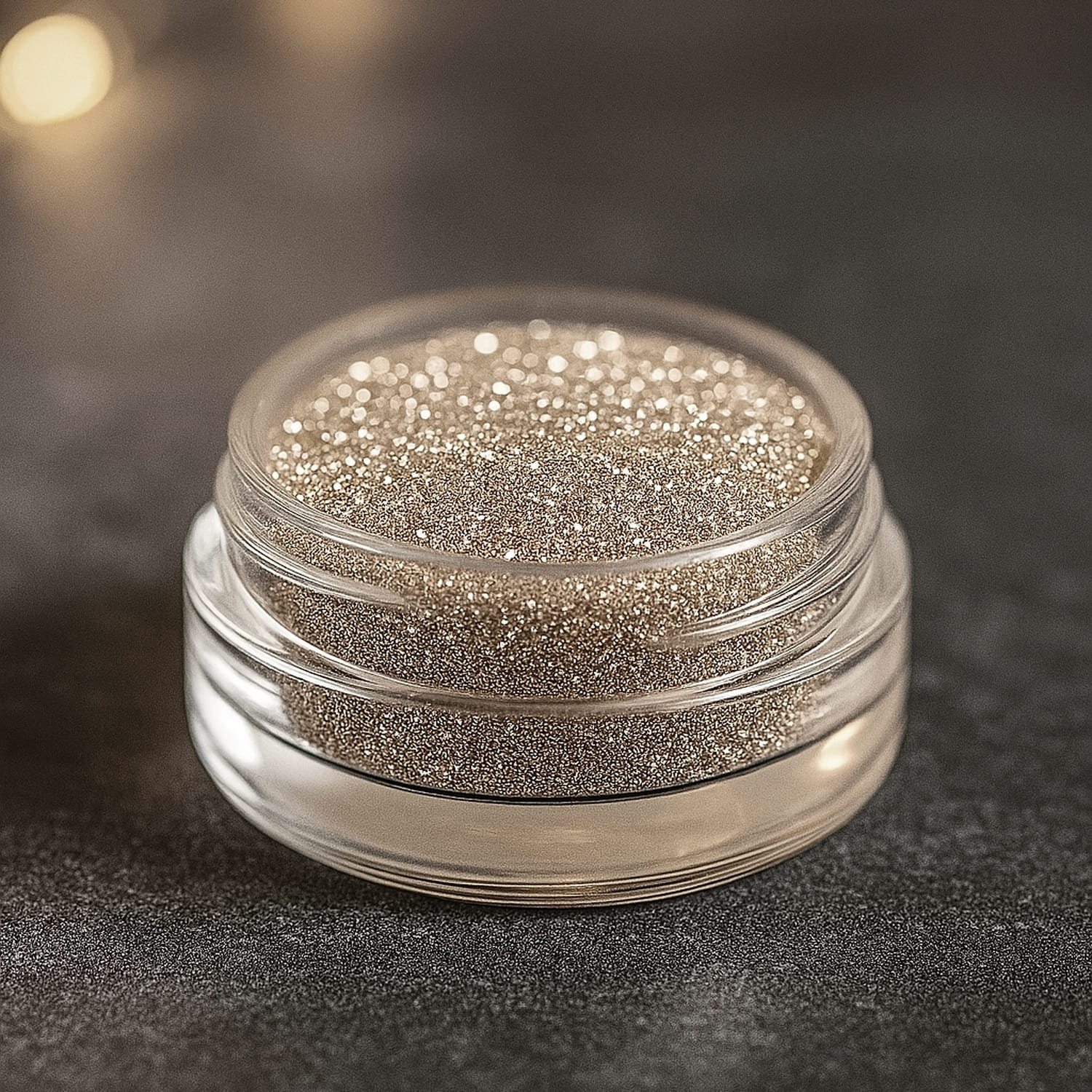 Ozdobny brokat 2g dekoracyjny JASNE ZŁOTO ECRU w pojemniczku. Sypki, drobny, pyłek brokatowy do paznokci, powiek, makijażu twarzy, tatuaży dla dzieci.