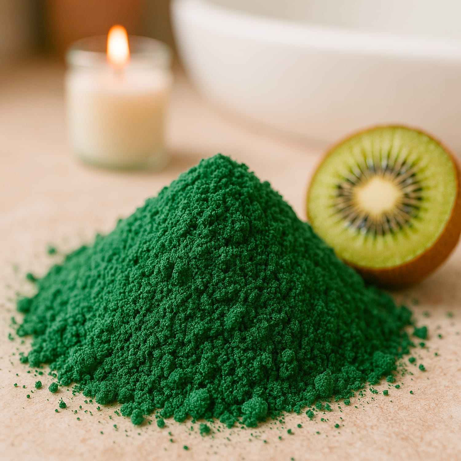 Musujący, zapachowy Puder do kąpieli KIWI 200g. Zielony, barwiący wodę, owocowy. Sól kąpielowa SPA z masłem kakaowym i SHEA dla dzieci i dorosłych.