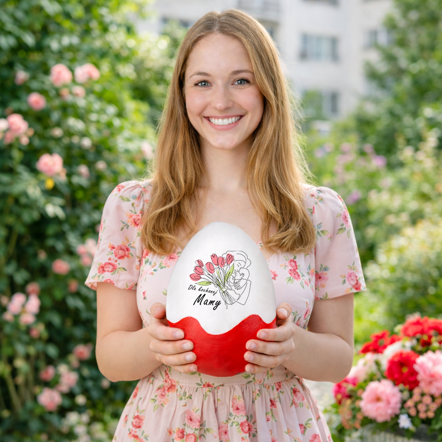 Personalizowany prezent dla Mamy ze słodyczami - Jajko Niespodzianka XL z imieniem na Dzień Matki, święta, urodziny i inne okazje.