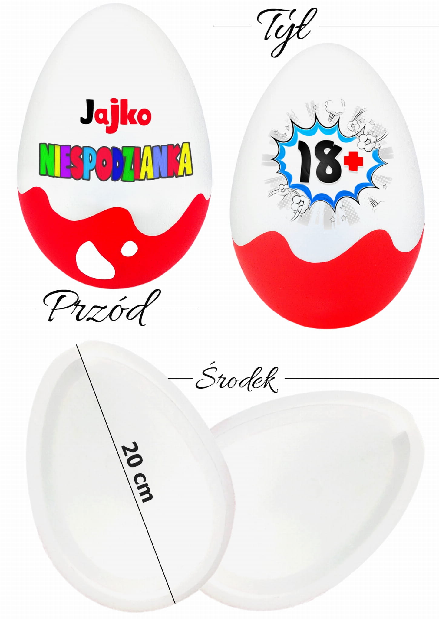 Personalizowany prezent na 18 urodziny 18stke dla dziewczyny, chłopaka Niespodzianka XL 20cm. Pomysł na śmieszny prezent na osiemnastkę dla syna córki
