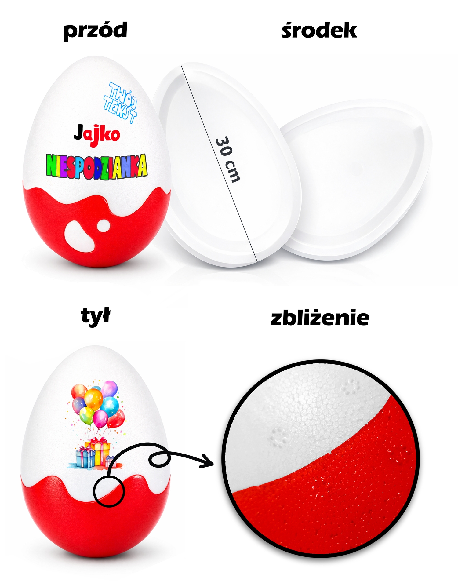 Urodzinowe Jajko Niespodzianka XXL z imieniem. Personalizowany prezent na urodziny dla dziecka i dorosłego.