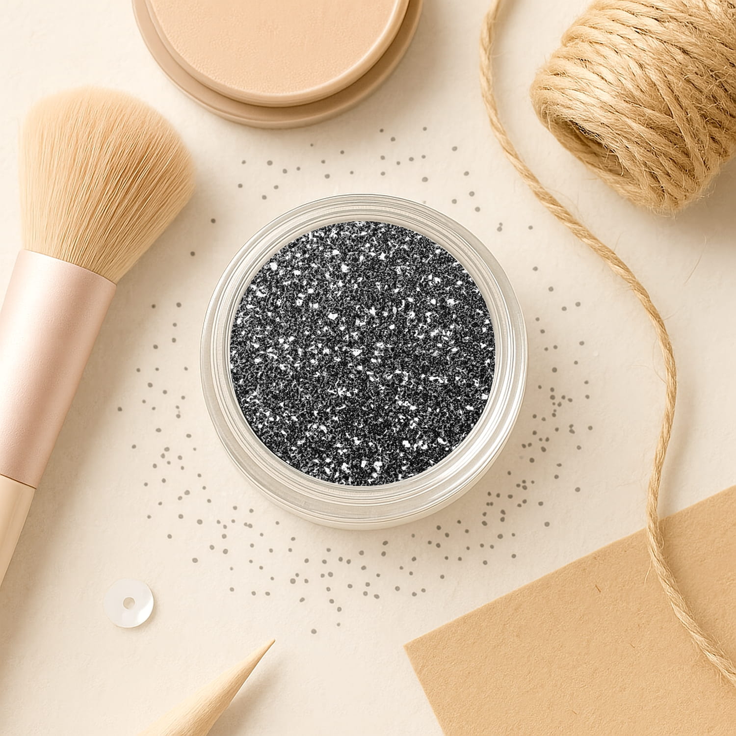 Ozdobny brokat 2g dekoracyjny SZARY w pojemniczku. Sypki, drobny, kosmetyczny pyłek brokatowy do paznokci, oczu, makijażu, twarzy, tatuaży dla dzieci.