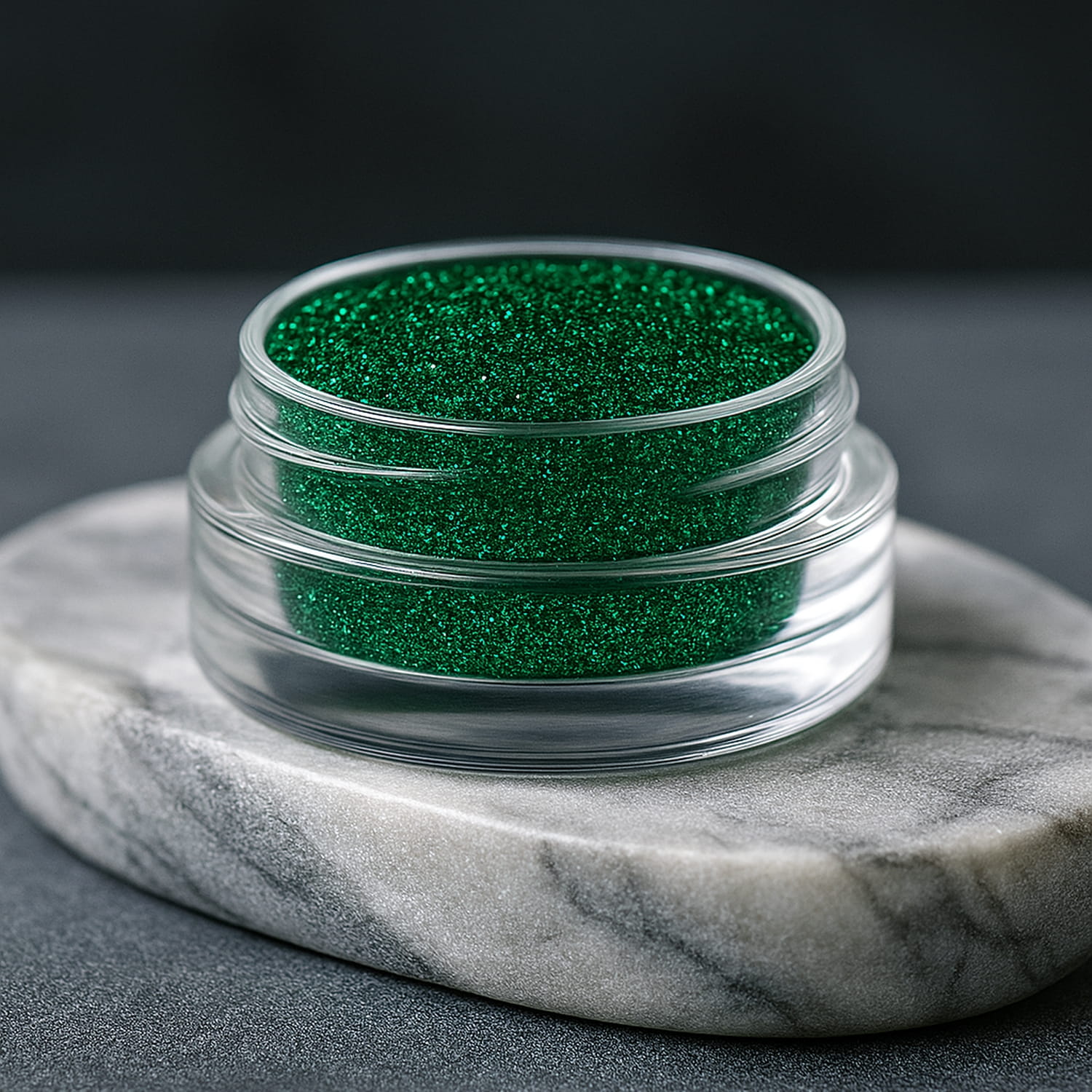 Sypki brokat ozdobny ZIELONY SZMARAGDOWY, BUTELKOWY 2g w pojemniczku. Drobny pyłek dekoracyjny do paznokci i rękodzieła.