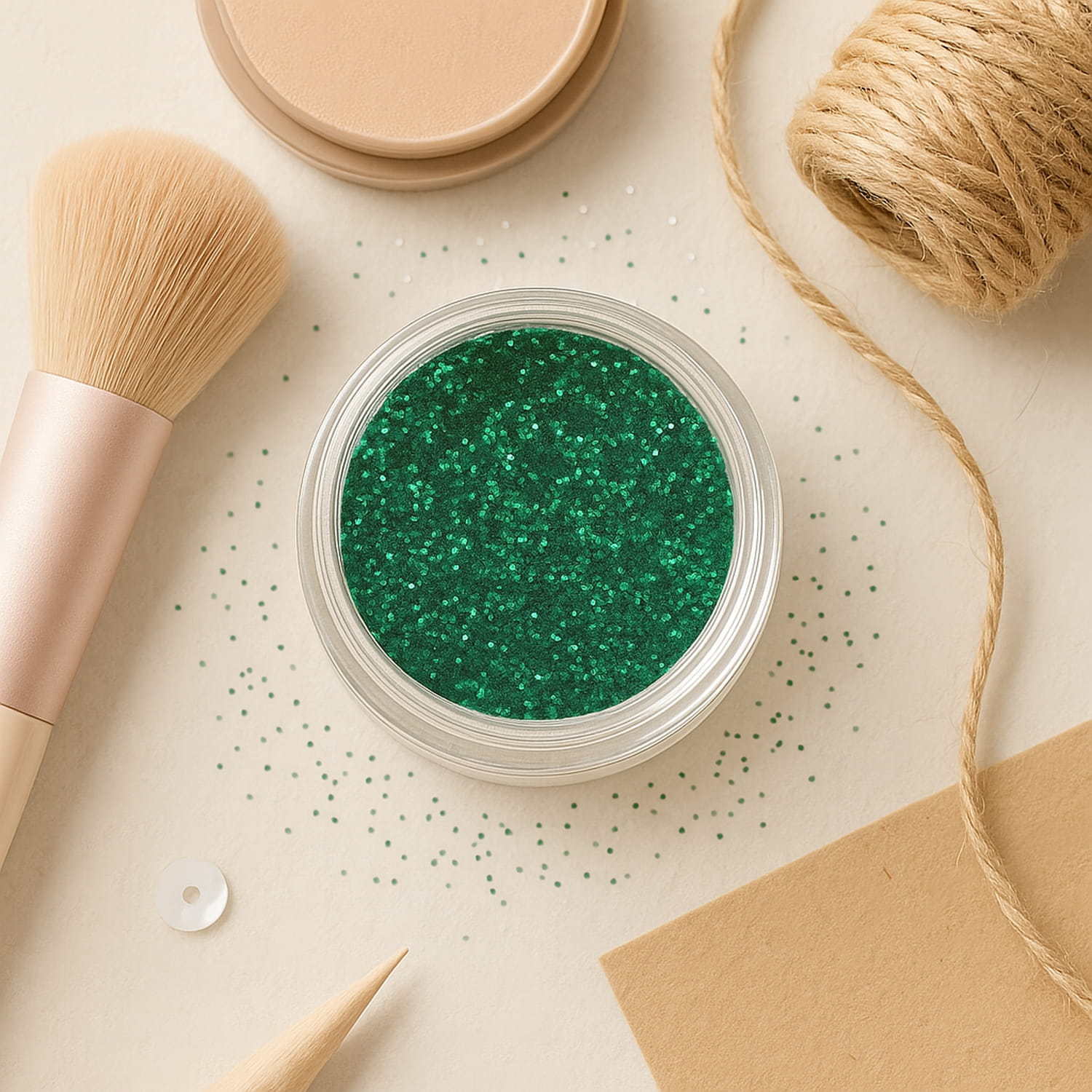 Ozdobny brokat 2g dekoracyjny ZIELONY butelkowy szmaragdowy w pojemniczku. Sypki pyłek brokatowy do paznokci, powiek, makijażu, tatuaży dla dzieci.