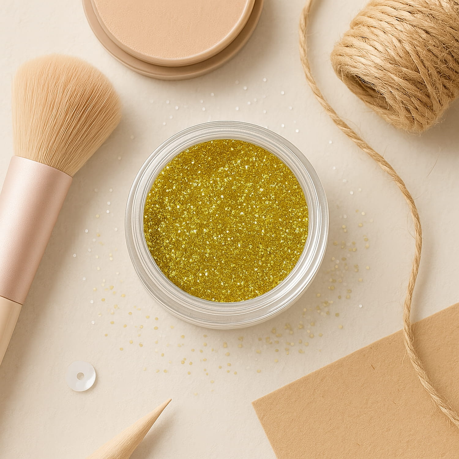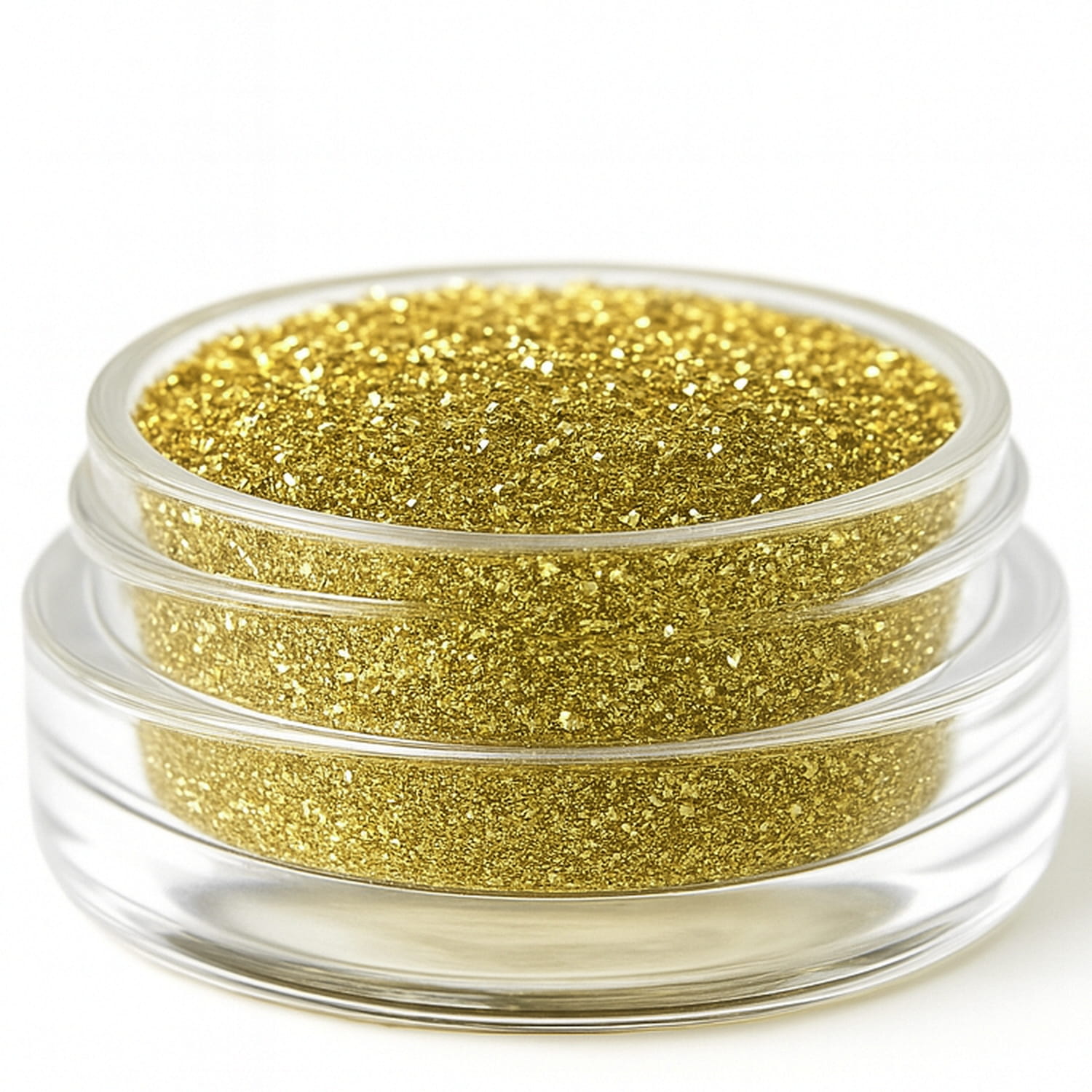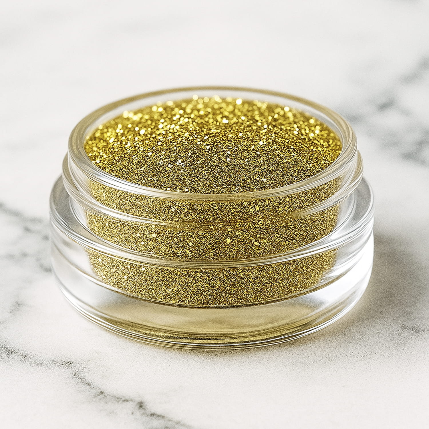 Ozdobny brokat 2g dekoracyjny ZŁOTY w pojemniczku. Sypki, drobny, pyłek brokatowy do paznokci, powiek, makijażu oczu, twarzy, tatuaży dla dzieci.